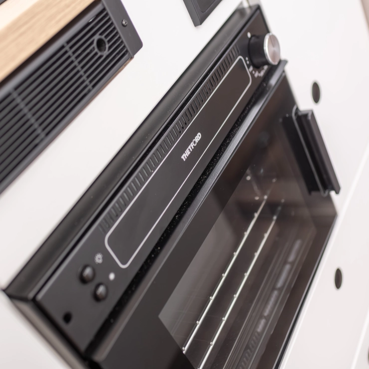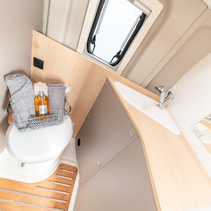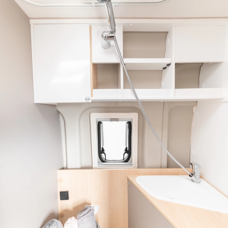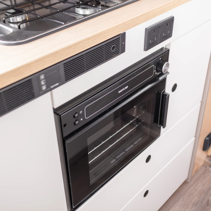 • Conveniently placed 12V control panel, incorportating water pump, lighting circuits, fresh water tank level and waste warning light when full