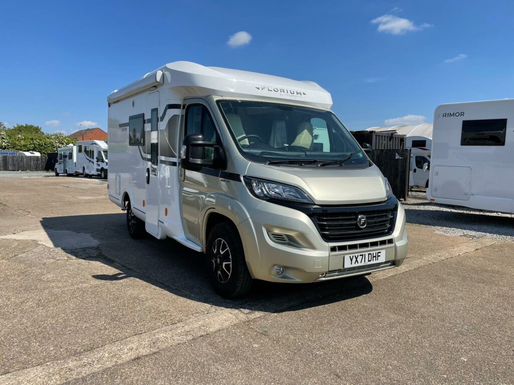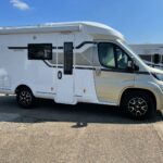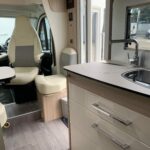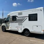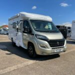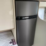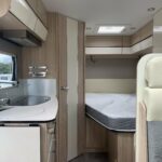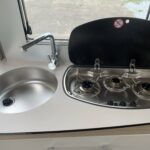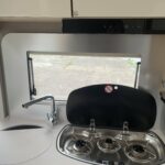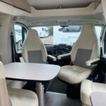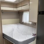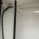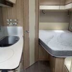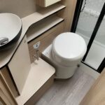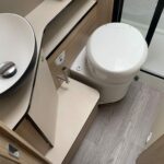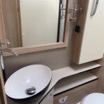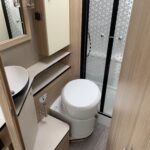 - The bathroom is equipped with a Thetford toilet, shower cubicle, and vanity washbasin