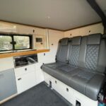 Premium leather Upgrade, Reversing camera, Grill, Gas BBQ point, Rear shower attachment, Thule wind out awning, Electric step, water system, rear bike rack, Stainless steel sink, Hob, SCA panoramic pop top roof. 105 ah Lithium Battery, Screen covers, Pop top insulation Covers, Rear tailgate cover, Duvalay matress topper, Carpet set, Vango Kella V airbeam drive away awning with carpet, Milenco pedal lock.