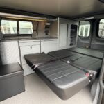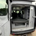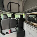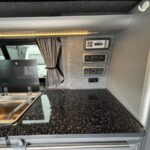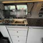 - Kitchen area with 2 burner gas hob and sink and Isotherm built-in refrigerator