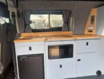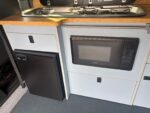 - The kitchen is well equipped with a 2-burner gas hob, sink, microwave and fridge