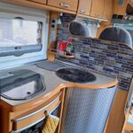 - Kitchen is well equipped with a 3 burner hob, sink, oven and Dometic fridge freezer