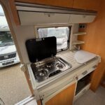 - Kitchen equipped with 3 burner hob, sink, Dometic fridge freezer and oven