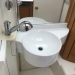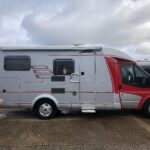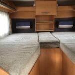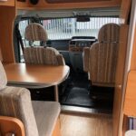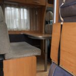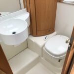 - The bathroom is equipped with a Thetford toilet, shower, and vanity washbasin
