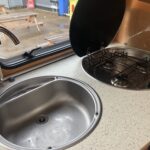 - The kitchen is equipped with a 3 burner hob, fridge, and sink