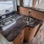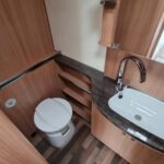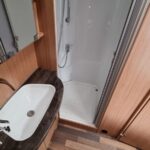 - Large end bathroom with a Thetford cassette toilet and a shower cubicle