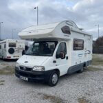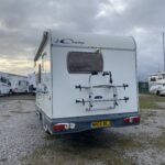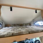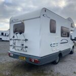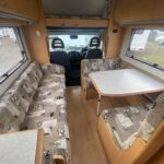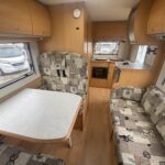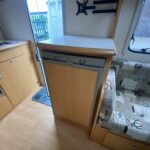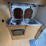 - Rear kitchen is equipped with a 3 burner hob, oven, sink, and Dometic fridge with freezer compartment