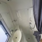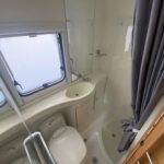 - Spacious washroom at the rear with vanity washbasin, Thetford cassette toilet, and shower
