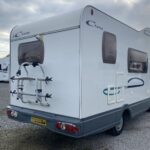 - Rear kitchen is equipped with a 3 burner hob, oven, sink, and Dometic fridge with freezer compartment
