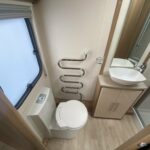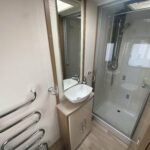 - Rear washroom with shower cubicle, vanity washbasin, and Thetford cassette toilet