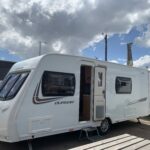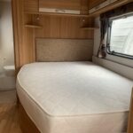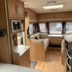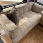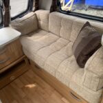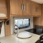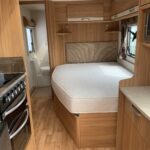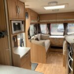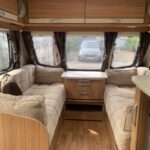 This 4-berth caravan comes fully equipped with a front lounge converted into single and double beds, Fixed French bed at the rear. The kitchen is equipped with an oven/grill, fridge with freezer compartment, microwave, sink, and dual-fuel hob. The bathroom is equipped with a Thetford toilet, shower, and vanity wash basin. Perfect for traveling!
