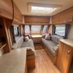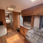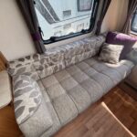 - The layout consists of a front lounge area that converts to a comfortable double bed
