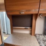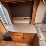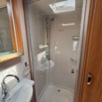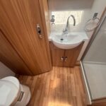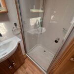 - The rear bathroom is spacious and consists of a shower cubicle, a Thetford cassette toilet and a vanity washbasin