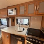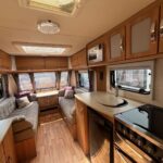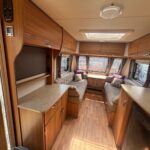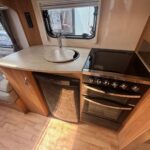 - The central kitchen is well equipped with a Dometic fridge freezer, 4 burner hob, oven and grill, microwave and sink