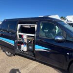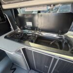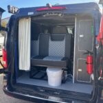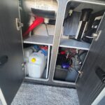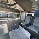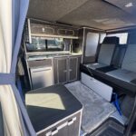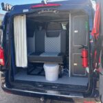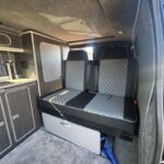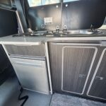 - The kitchen area is equipped with a 2-burner hob, sink, fridge and sockets