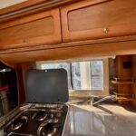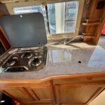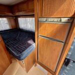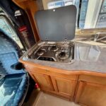 - The kitchen area converts is well equipped with a sink, 3 burner hob and Electrolux fridge freezer