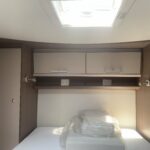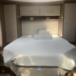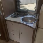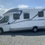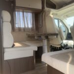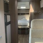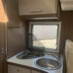 This 5 berth with 5 belt motorhome comes fully equipped with a fixed island double bed at the rear, an electric drop-down double bed, and the kitchen dinette converts into a single bed. The kitchen is fully equipped with a 3 burner hob, oven, grill, fridge, and freezer. The bathroom is fully equipped with a Thetford toilet and vanity wash basin and a separate shower. Perfect for traveling!