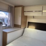 - The layout consists of a rear double island bed, which is electric and lifts up to create more garage space