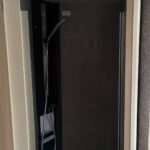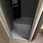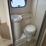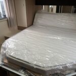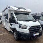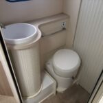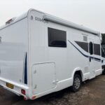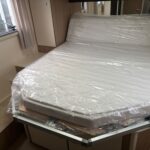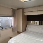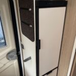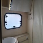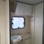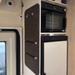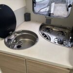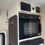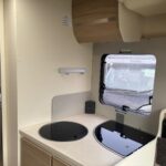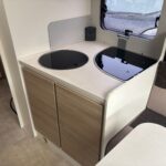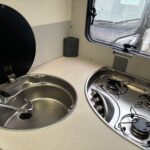 - Kitchen unit equipped with 3-burner hob, sink, and a 141L fridge freezer, Oven
