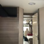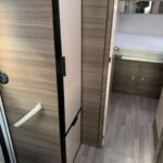 • The bathroom is fully equipped with a Thetford toilet, shower, and washbasin