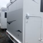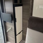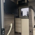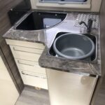 - Kitchen unit equipped with 3 burner hob sink and a fridge with freezer compartment