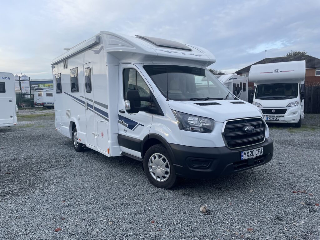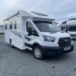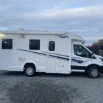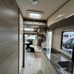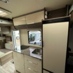 - Kitchen equipped with Thetford 3 way fridge freezer, oven , sink, and 3 burner gas hob