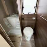 - Bathroom with shower cubicle, Thetford cassette toilet, and vanity washbasin