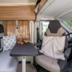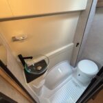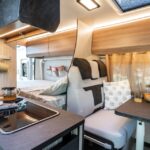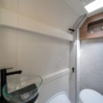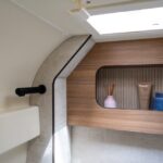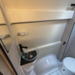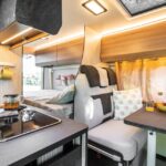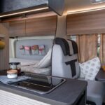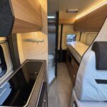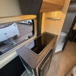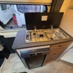 - Kitchen unit equipped with 2 burner hob, sink, and a 70 L compressor fridge