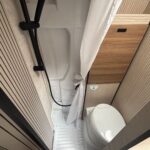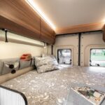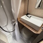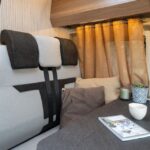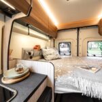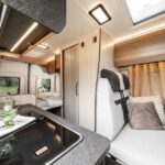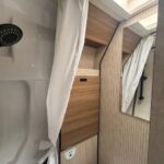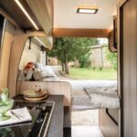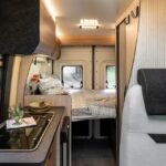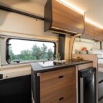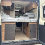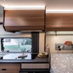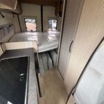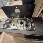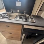 - Kitchen unit equipped with 2 burner hob, sink, and a 70 L compressor fridge