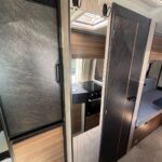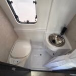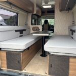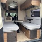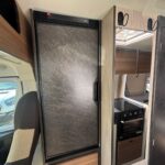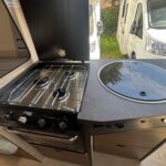 - Kitchen unit equipped with 3 burner hob, sink, and a compressor fridge