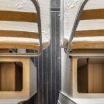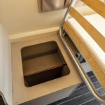 - Twin bed divider with steps. By night, a handy step for climbing into bed, by day it acts as a