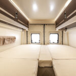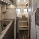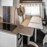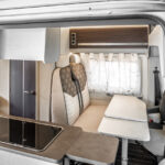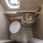 - Wet room Shower and cassette toilet with washbasin with new thermoformed swivelling bathroom washbasin to ensure space for every need (toilet/