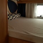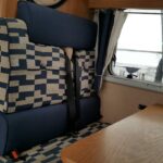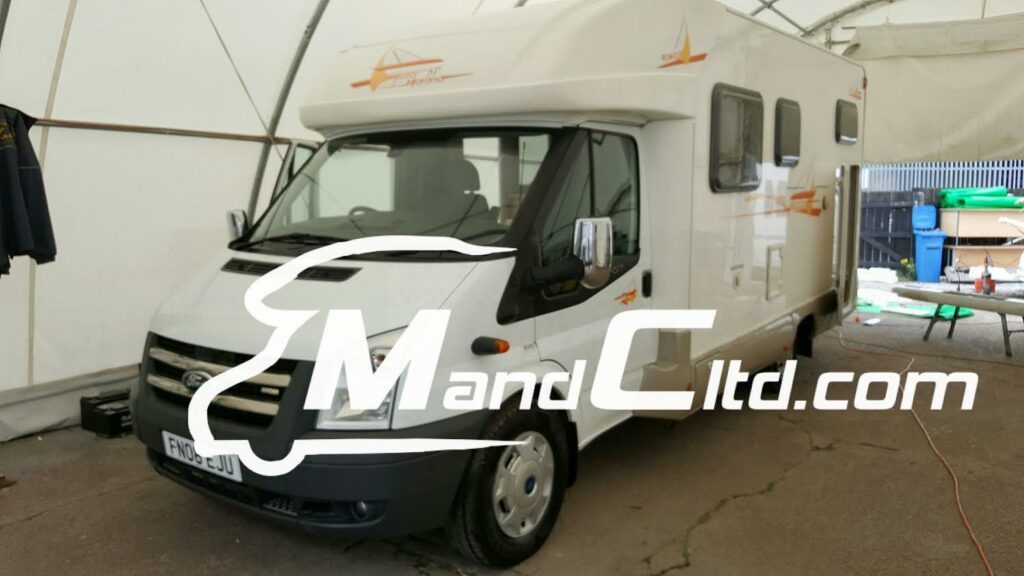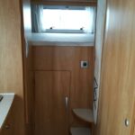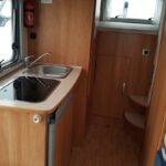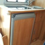 - Side Kitchen area equipped with a 2 burner hob, Thetford 3 way Fridge and Sink