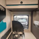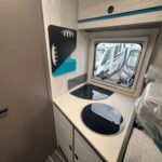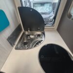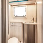 - The new layout consists of a separate shower cubicle and cassette toilet with a washbasin