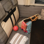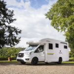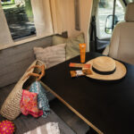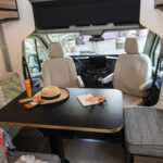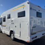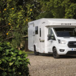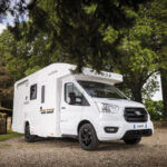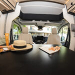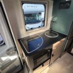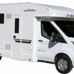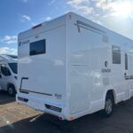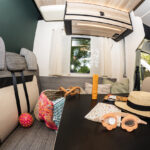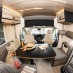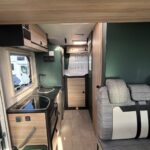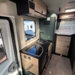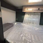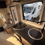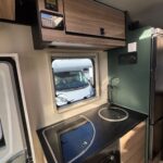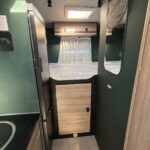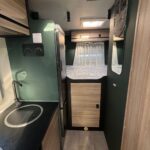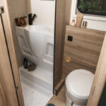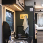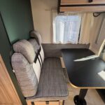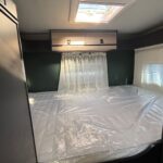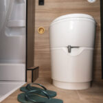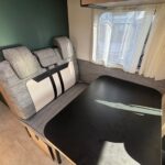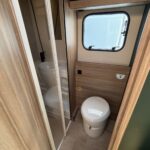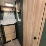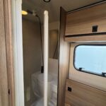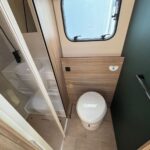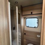- Central washroom equipped with shower cubicle, washbasin, and a cassette toilet