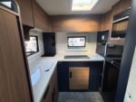 - Kitchen unit equipped with 3 burner hob, sink, and a 141L fridge with freezer compartment
