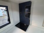- The new layout consists of a Shower cubicle and cassette toilet with a washbasin