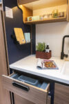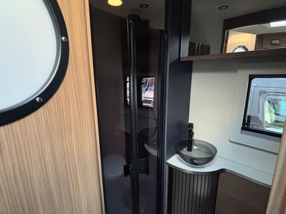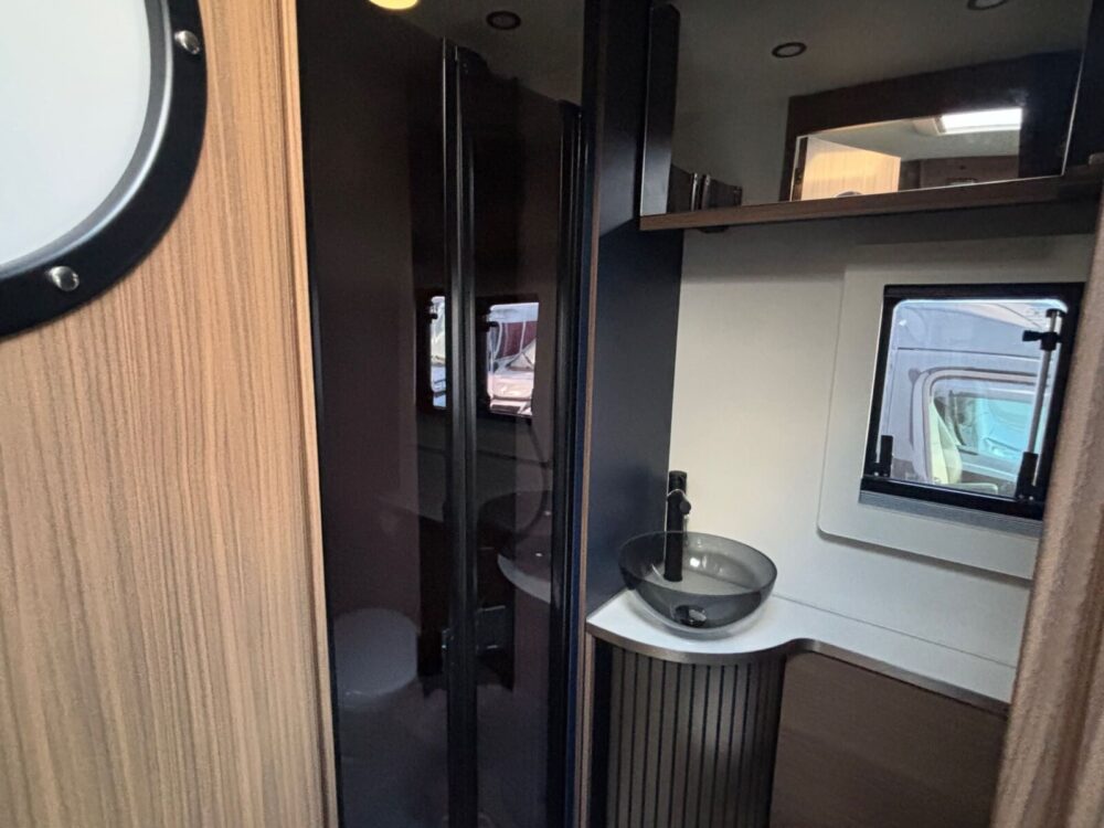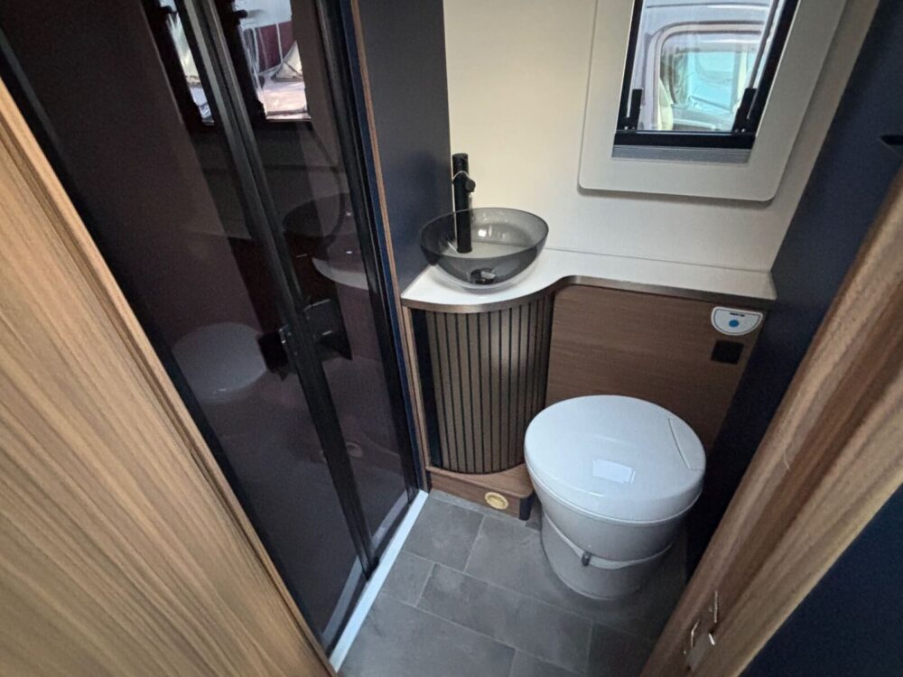 - The new layout consists of a Shower cubicle and cassette toilet with a washbasin