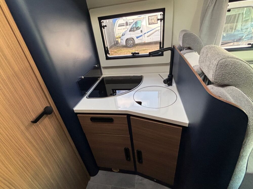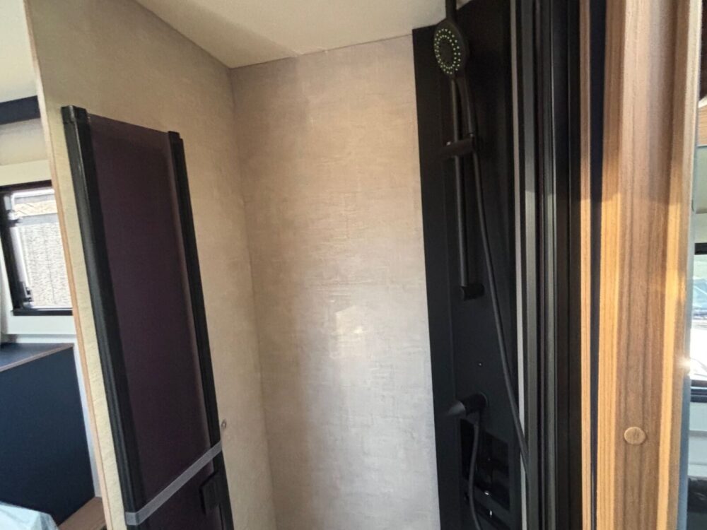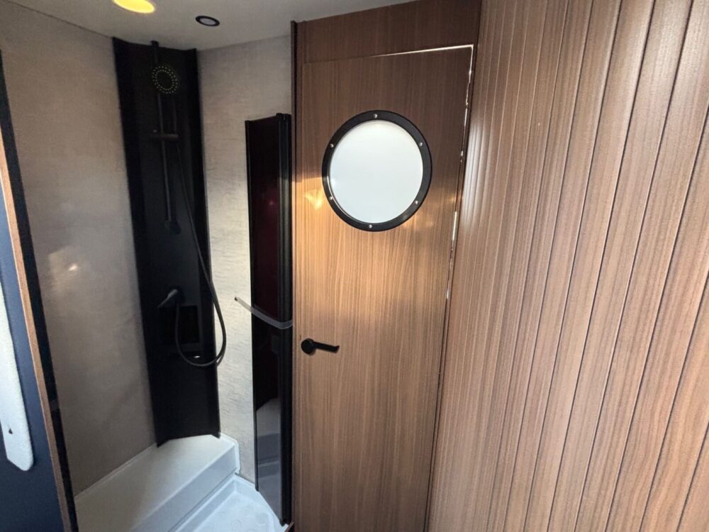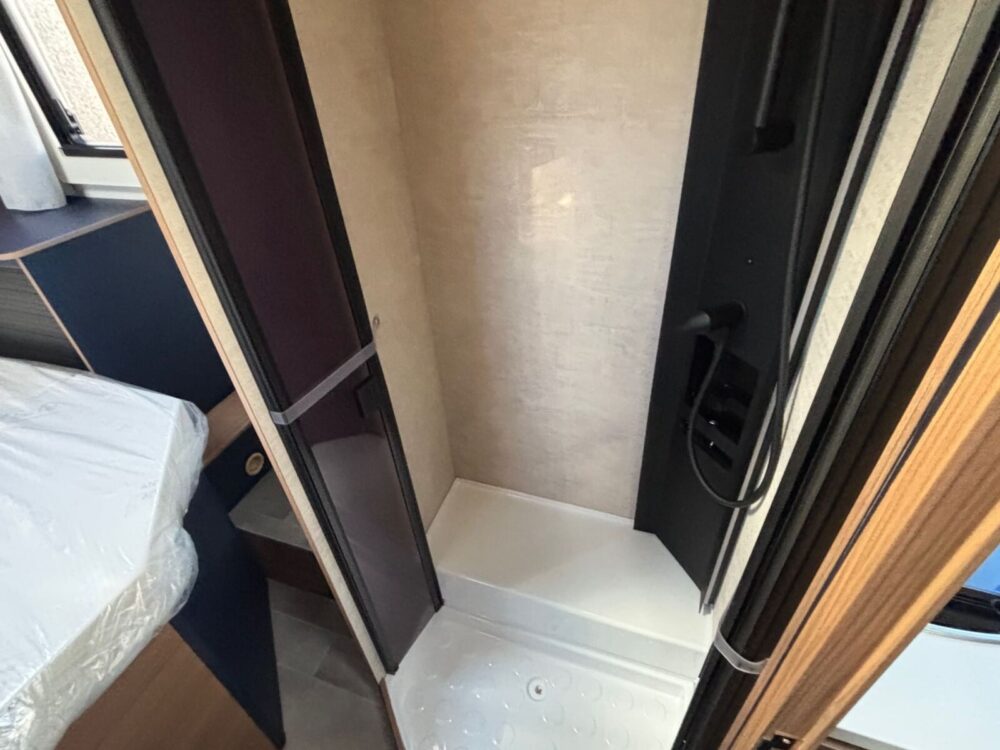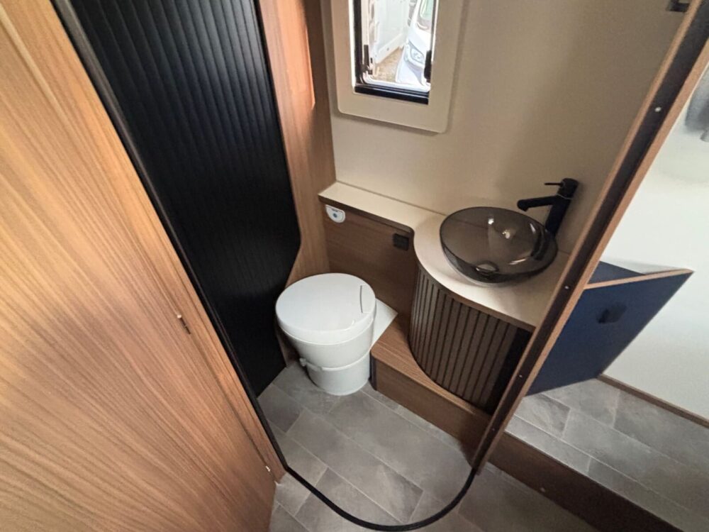 - The new layout consists of a Shower cubicle and cassette toilet with a washbasin