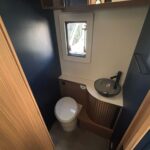 - The new layout consists of a Shower cubicle and cassette toilet with a washbasin