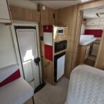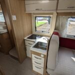 - Kitchen equipped with hob, sink, microwave, and fridge freezer