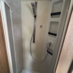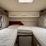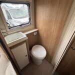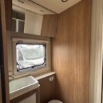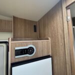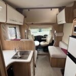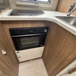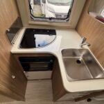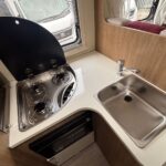 - Kitchen equipped with 3-burner hob, Thetford fridge freezer, Thetford oven, and sink