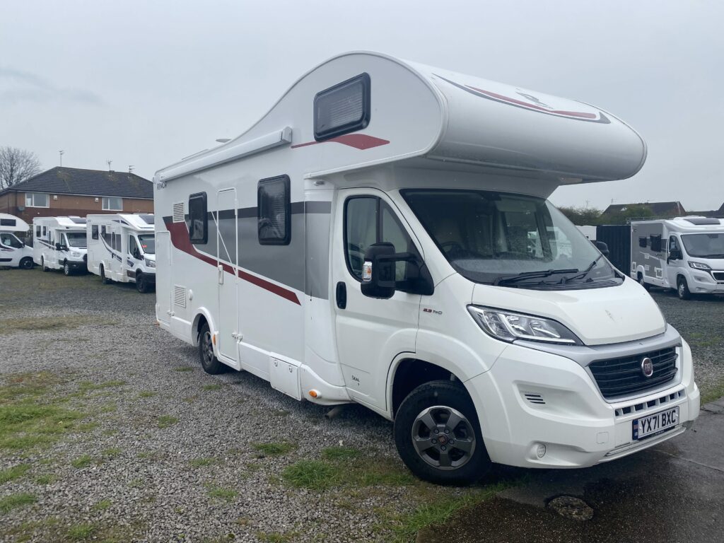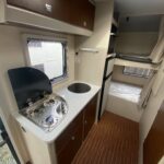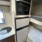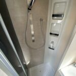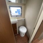 - Central bathroom with Thetford cassette toilet, vanity washbasin, separate shower cubicle