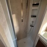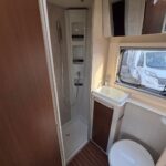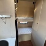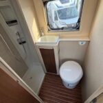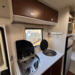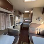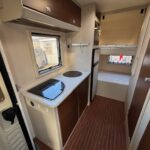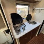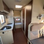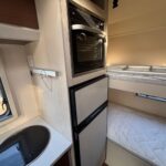 - Kitchen unit equipped with 3 burner hob, sink and an 89L fridge with freezer compartment