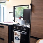 - Kitchen equipped with a 3 gas hob burner, and a sink with a pull-out kitchen sink mixer tap