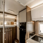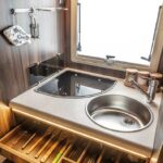 - Kitchen equipped with a 3 gas hob burner, and a sink with a pull-out kitchen sink mixer tap