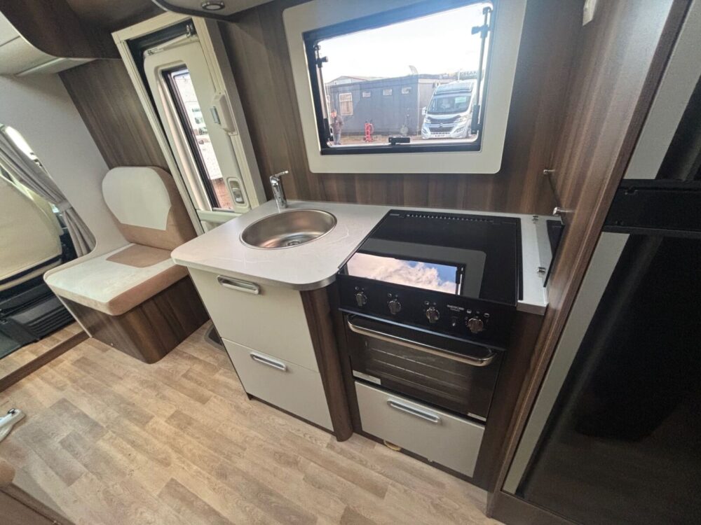 - Kitchen equipped with a 3-gas hob burner, and a sink with a pull-out kitchen sink mixer tap