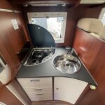 - Kitchen area is well equipped with a sink, 3 burner hob, Dometic grill and a Dometic XL Fridge Freezer