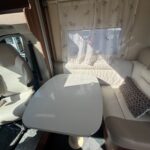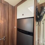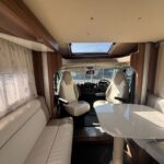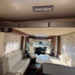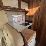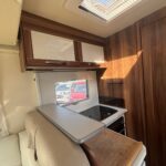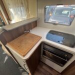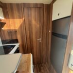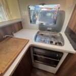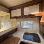 - The kitchen is spacious and consists of a 3-burner hob, Thetford oven and grill, sink, and Fridge freezer