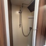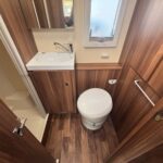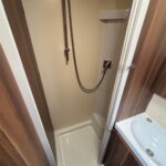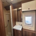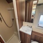 - The rear bathroom consists of a Thetford cassette toilet, vanity washbasin and separate shower cubicle